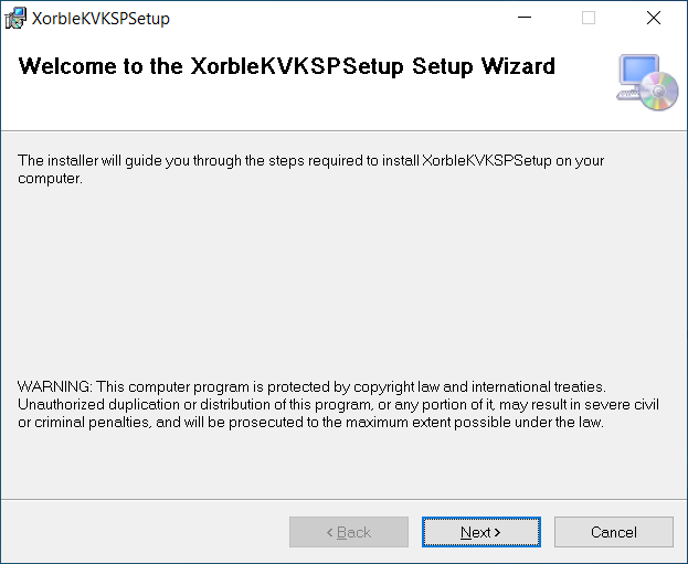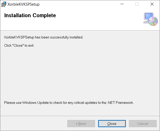 Run the XorbleKVKSP.msi installer and wait for the installation to complete (this should only take a few seconds)