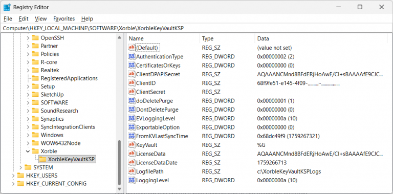 - HKEY_LOCAL_MACHINE\SYSTEM\CurrentControlSet\Control\Cryptography\Providers\Xorble Key Vault Key Storage Provider\UM